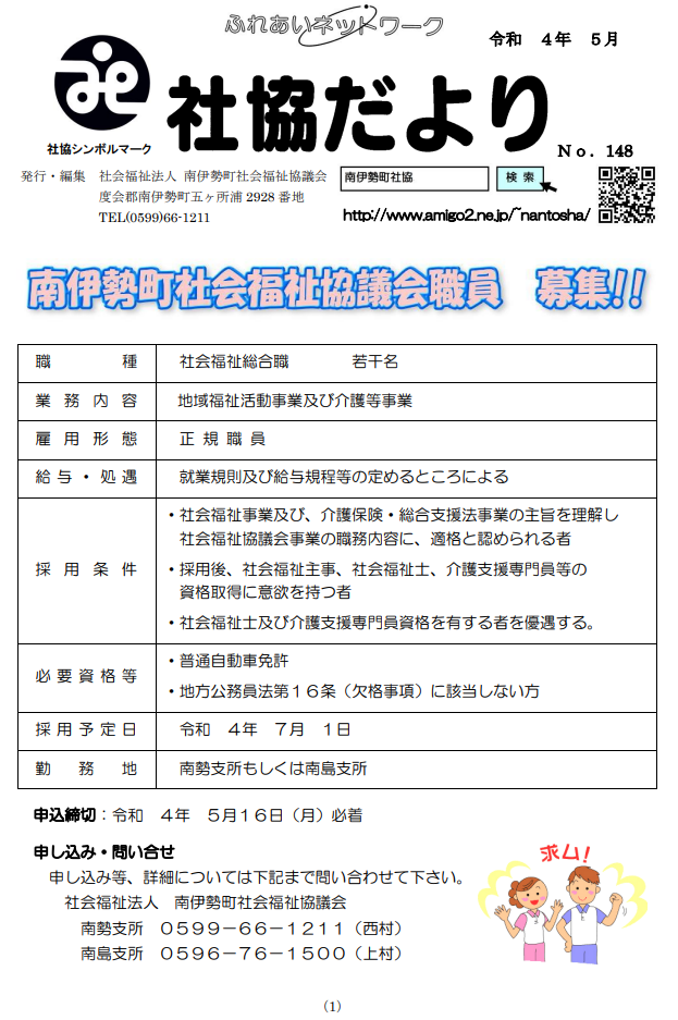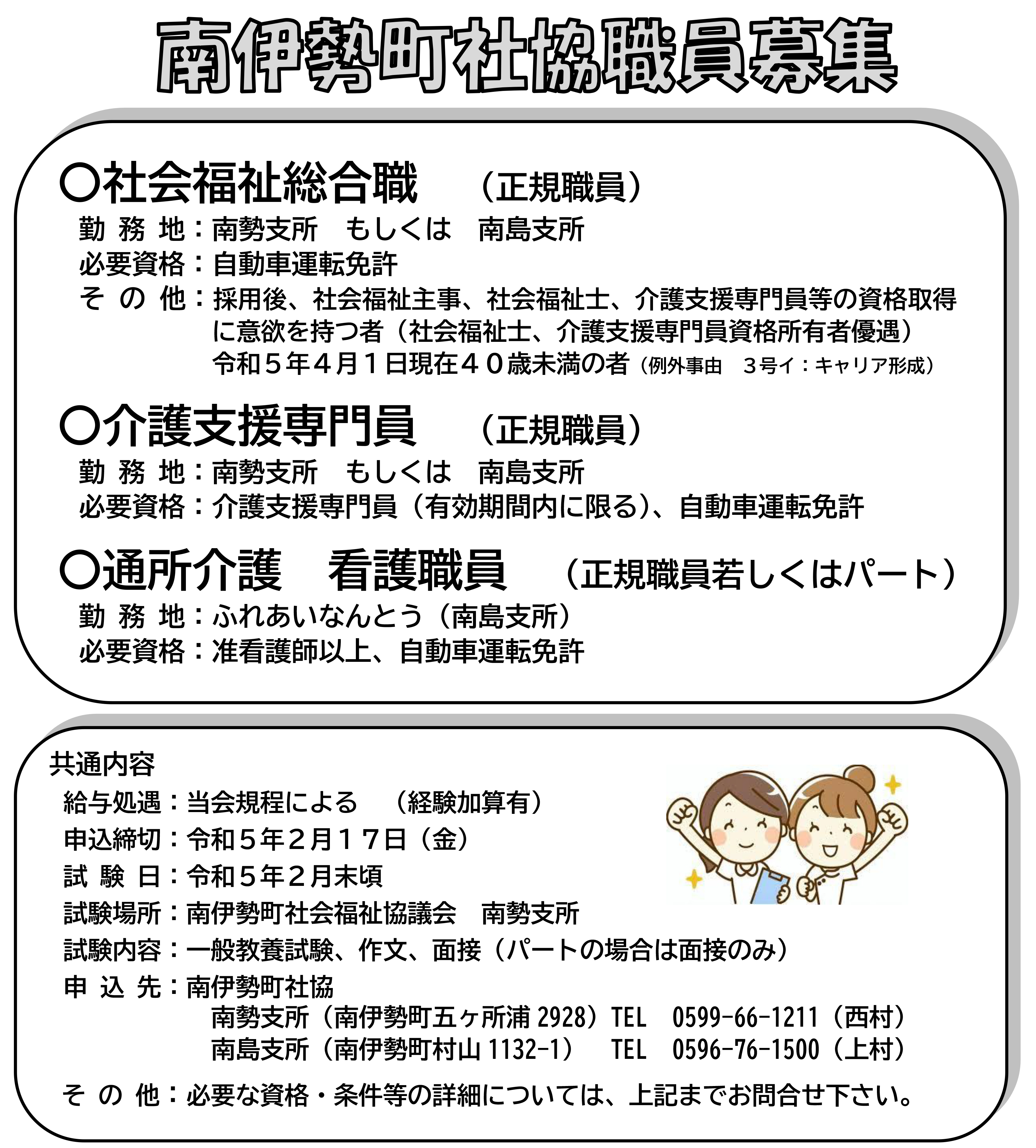 令和5年度 南伊勢町社会福祉協議会 新規採用職員 募集!!