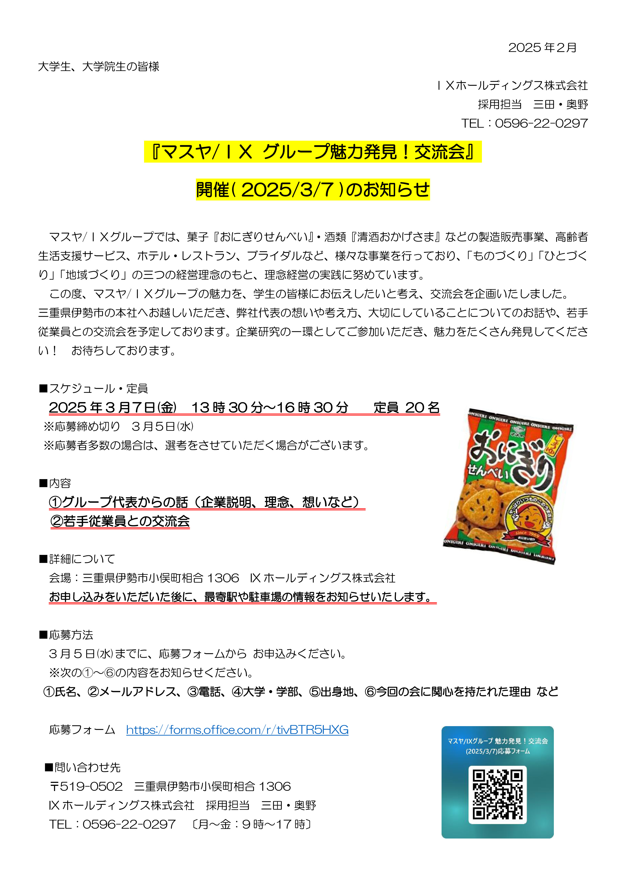 マスヤ/IXグループ魅力発見交流会_3月8日(金)の開催について