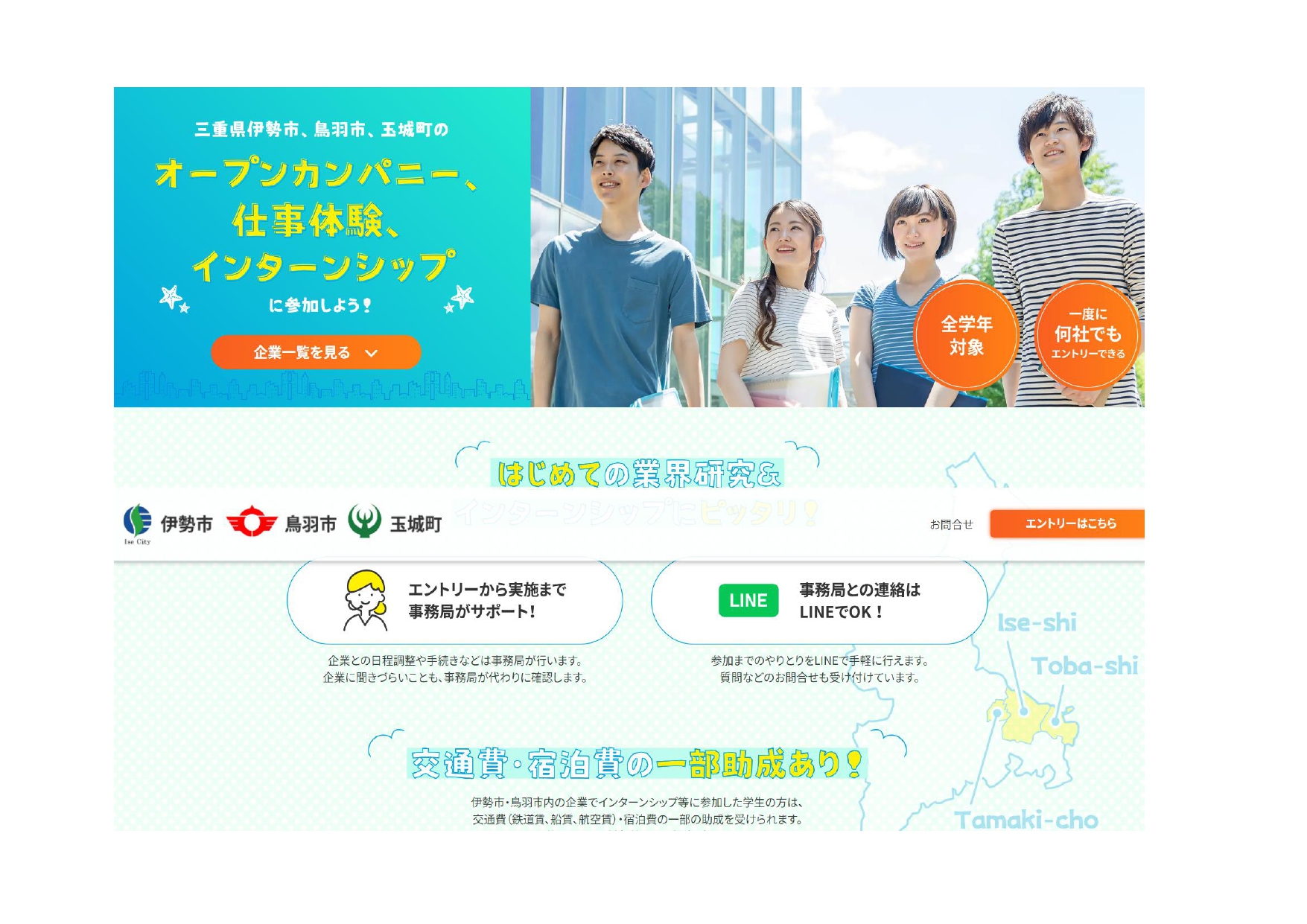 『伊勢市・鳥羽市・玉城町共催 インターンシップ&仕事体験&オープンカンパニー』の学生向けサイトがオープンしました。
